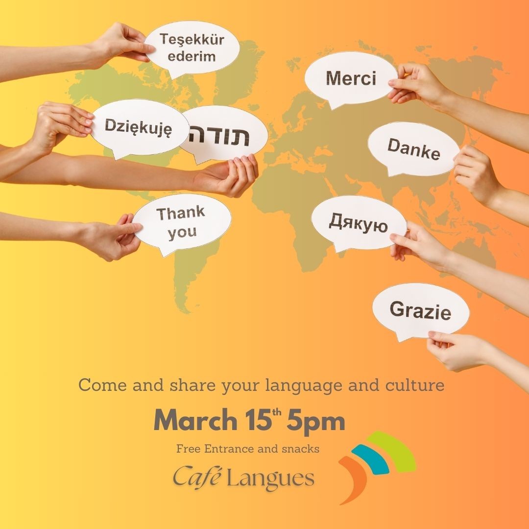 tout en pratiquant différentes langues dans la convivialité! Que vous soyez natif ou débutant, cet événement est l'occasion