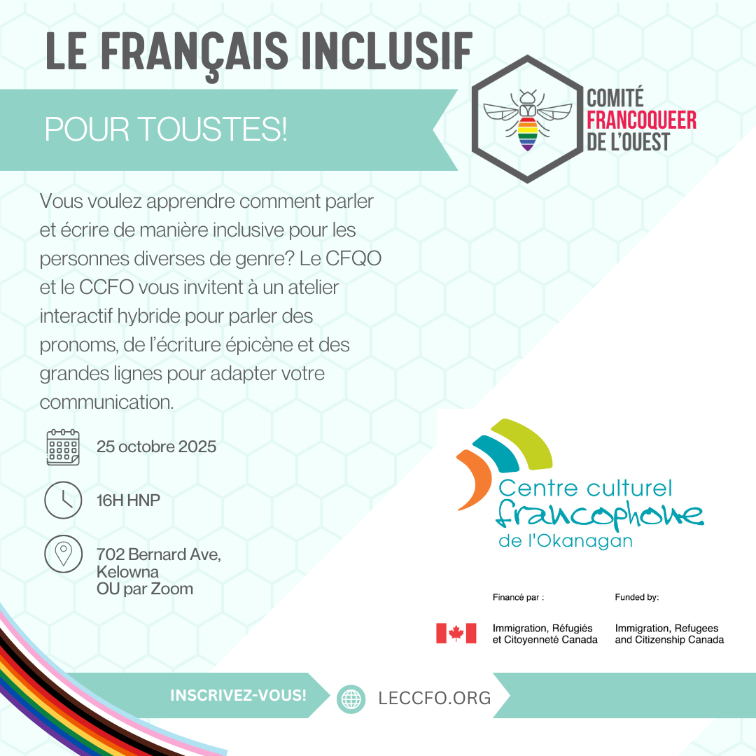 The Inclusive French workshop is offered to those who wish to deepen their reflection and explore ways to promote inclusion through spoken